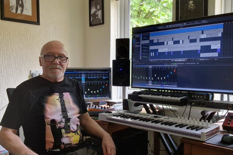 During this time, Ken made his way back to his roots in Ireland, building a home in a secluded area, while the music they had created was temporarily set aside. Tragically, in 2017, the music community mourned the loss of Camtan, who left behind a wealth of vocal performances and unfinished tracks on Martin’s hard drives. Among these recordings were also Ken's vocals from numerous incomplete works.